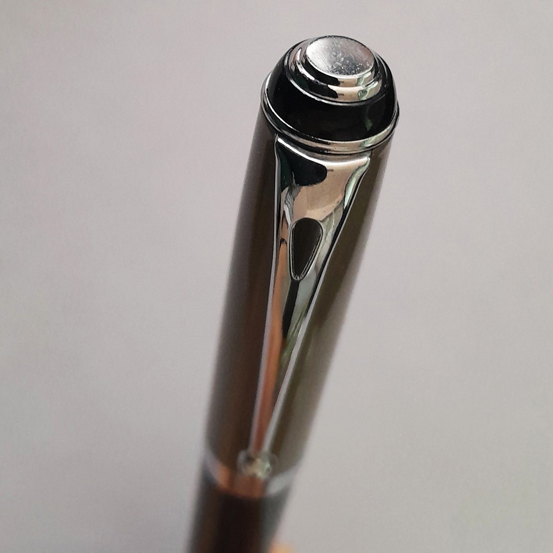 Классическая шариковая ручка в подарочном футляре, в металлическом лакированном корпусе, с хромированными деталями отделки, и синими чернилами.