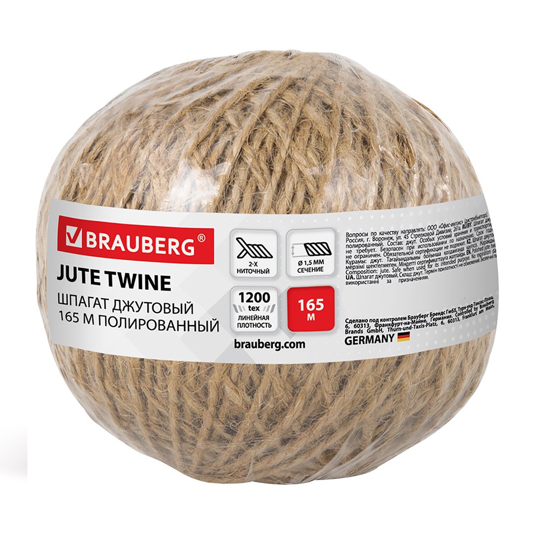 Шпагат джутовый, полированный, длина 165 м диаметр 1.5 мм, 2-х ниточный, BRAUBERG — этот товар можно заказать оптом и в розницу с доставкой по Беларуси на сайте M4,