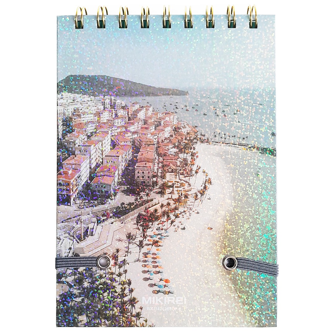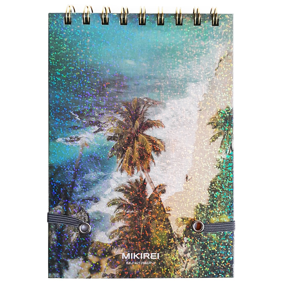 Блокнот Mikirei — стильный и практичный аксессуар для записей, творчества и планирования. Компактный формат B6, плотная бумага и яркая, твердая обложка с голографической фольгой делают его удобным для внесения дорожных заметок в путешествиях.