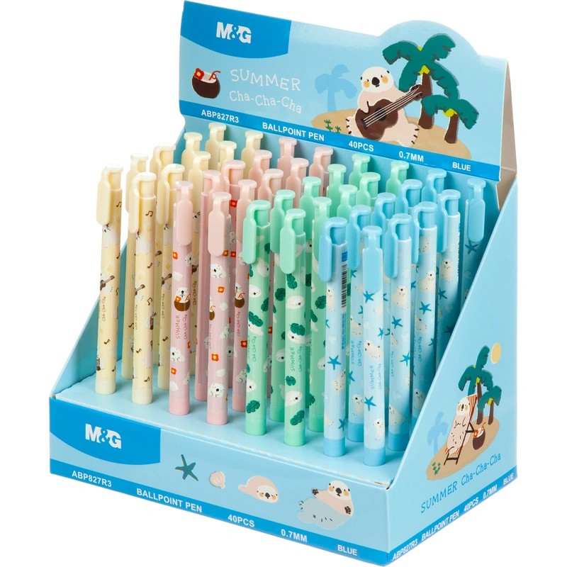Автоматическая шариковая ручка M&G SUMMER в пластиковом корпусе в пастельных тонах с забавным принтом, прорезиненной областью захвата и синими чернилами. Мягкое, скользящее письмо.