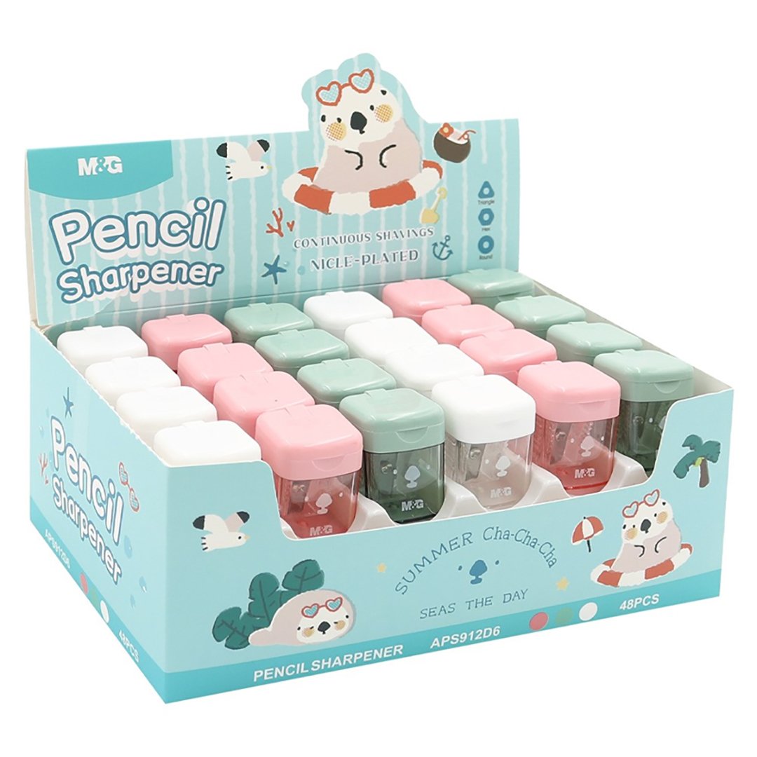 Мини-точилка M&G — удобное и компактное решение для заточки карандашей. Точилка оснащена прозрачным контейнером для сбора стружки и защитной крышкой, предотвращающей загрязнение.