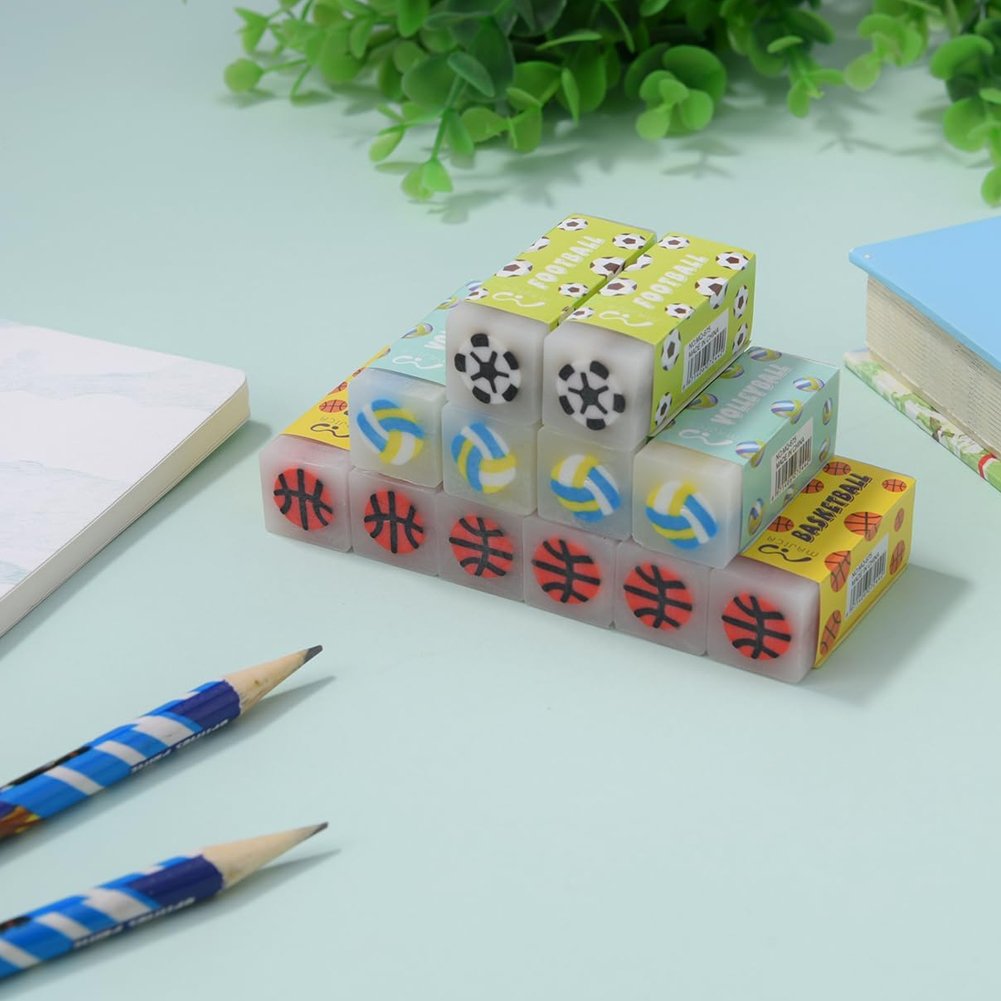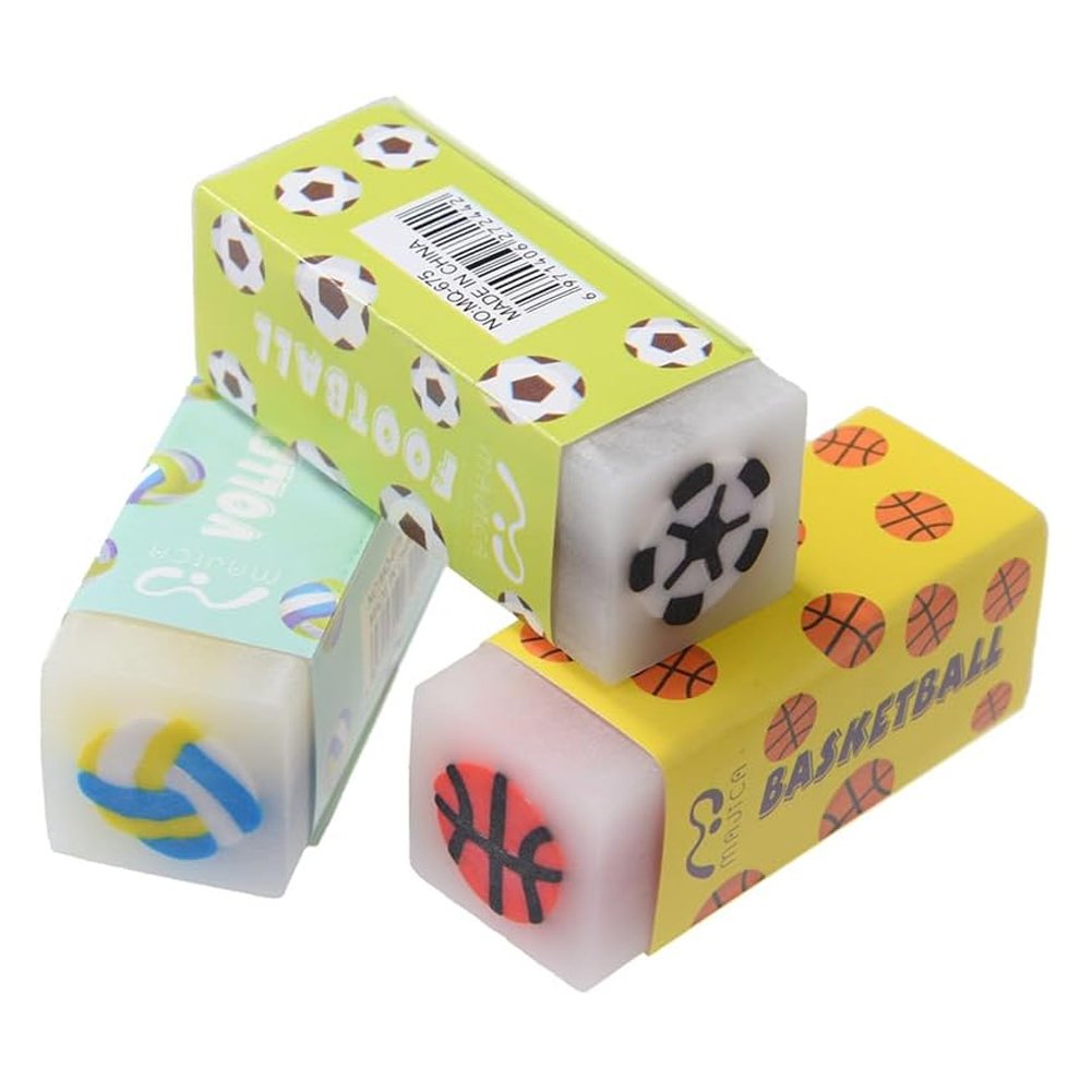 Разнообразные спортивные дизайны — в виде мяча для футбола, баскетбола и волейбола — делают ластик ярким и привлекательным аксессуаром для школьников, студентов и творческих людей.