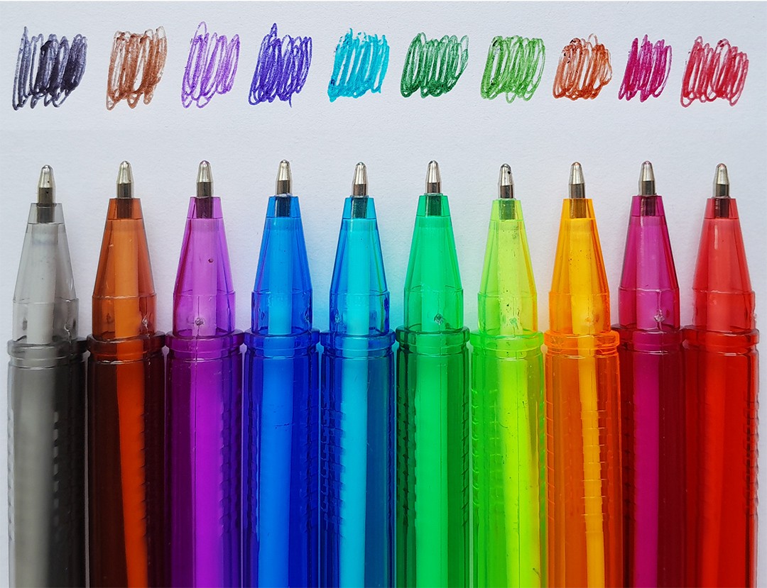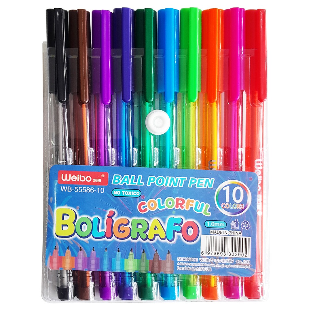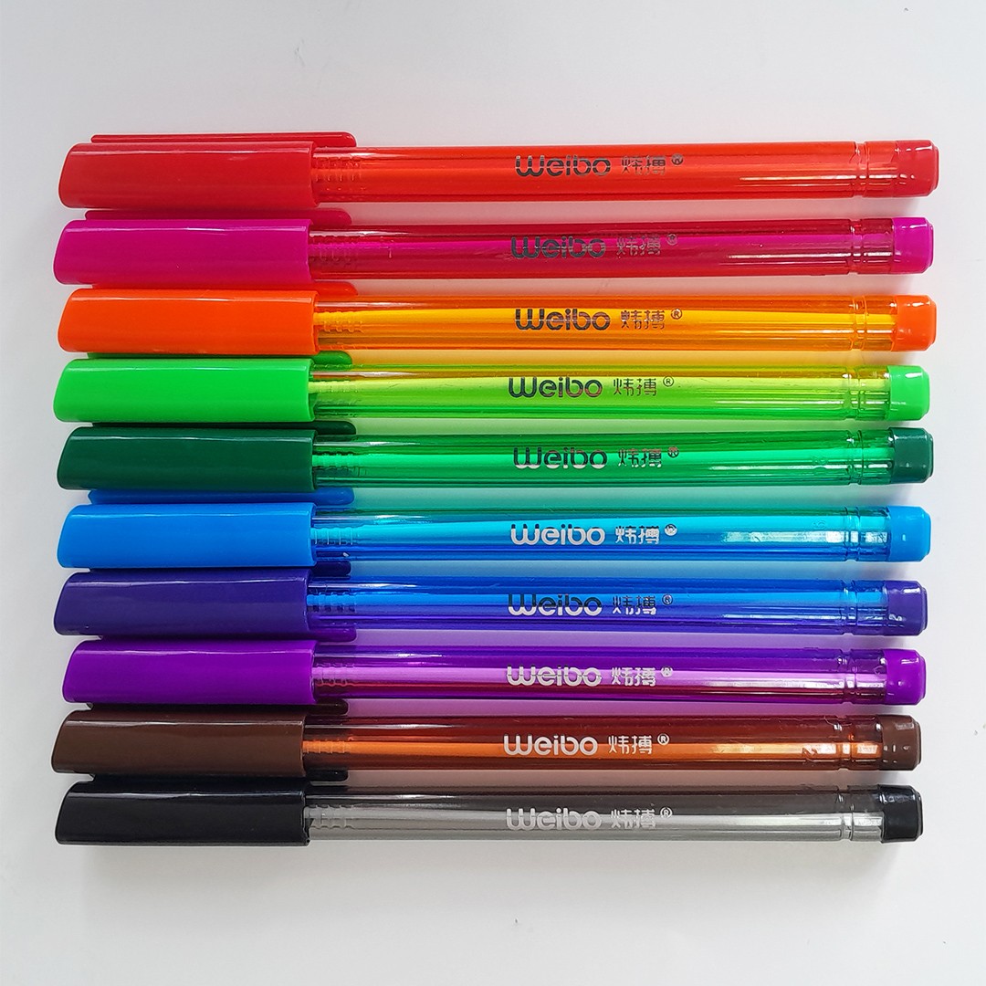 Набор цветных шариковых ручек Weibo BOLIGRAFO в полупрозрачном, ярком корпусе. Цвет корпуса и колпачка ручек соответствует цвету чернил.