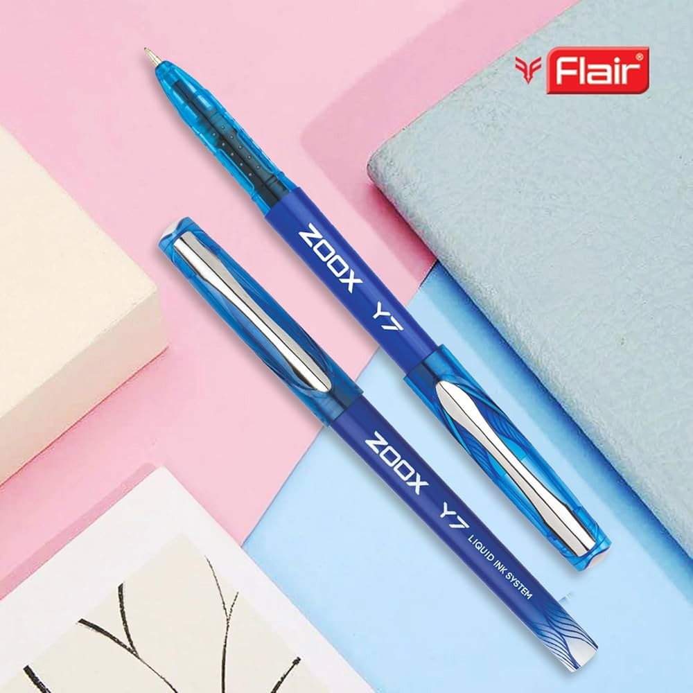 Элегантная ручка Flair ZOOX Y7 в пластиковом корпусе, с металлическим клипом и синими чернилами на масляной основе.