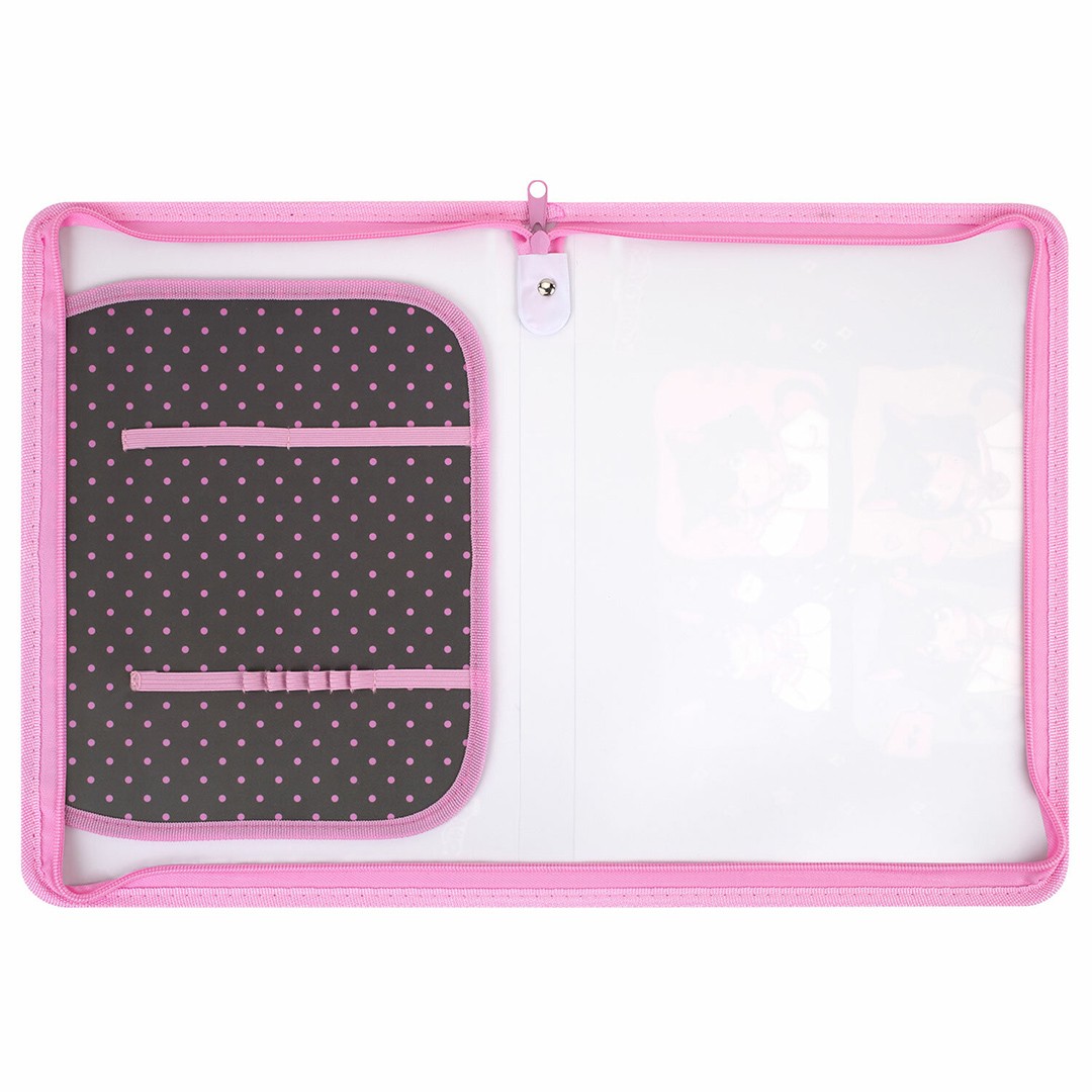 Застежка-молния, расположенная с трех сторон папки, обеспечивает быстрый доступ к содержимому.