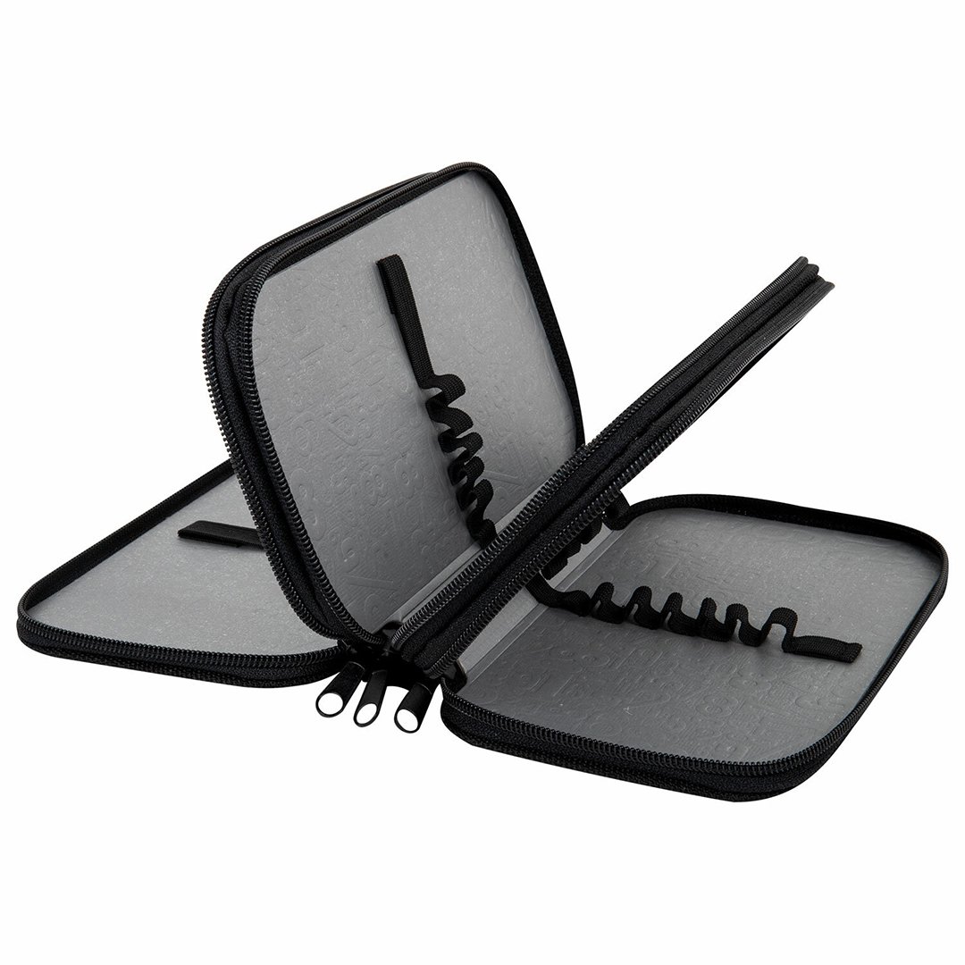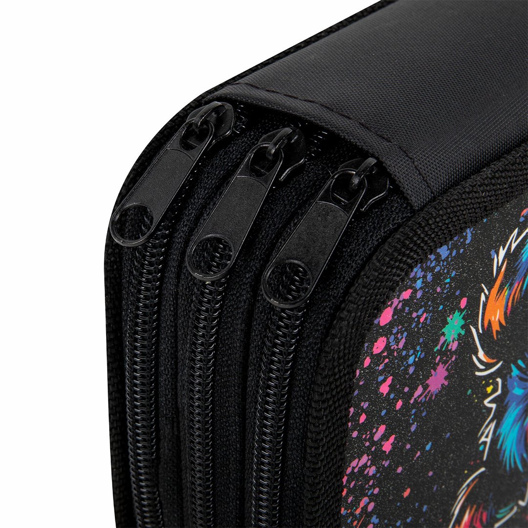 Благодаря трем полноценным отделениям на молнии и прочным внутренним резинкам для канцелярских принадлежностей, пенал позволяет организовать до 42 предметов.