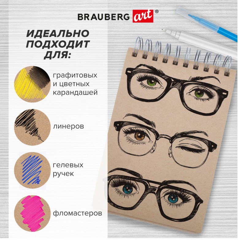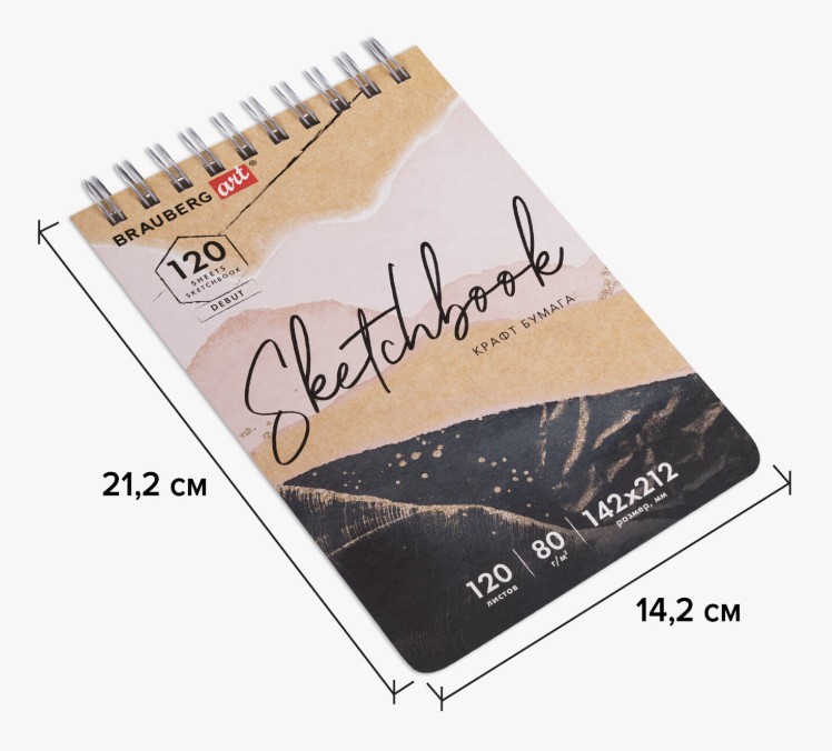 Скетчбук BRAUBERG ART «DEBUT» для эскизов и графики. Подходит для работы с широким спектром графических материалов (уголь, соусы, карандаши и прочие).