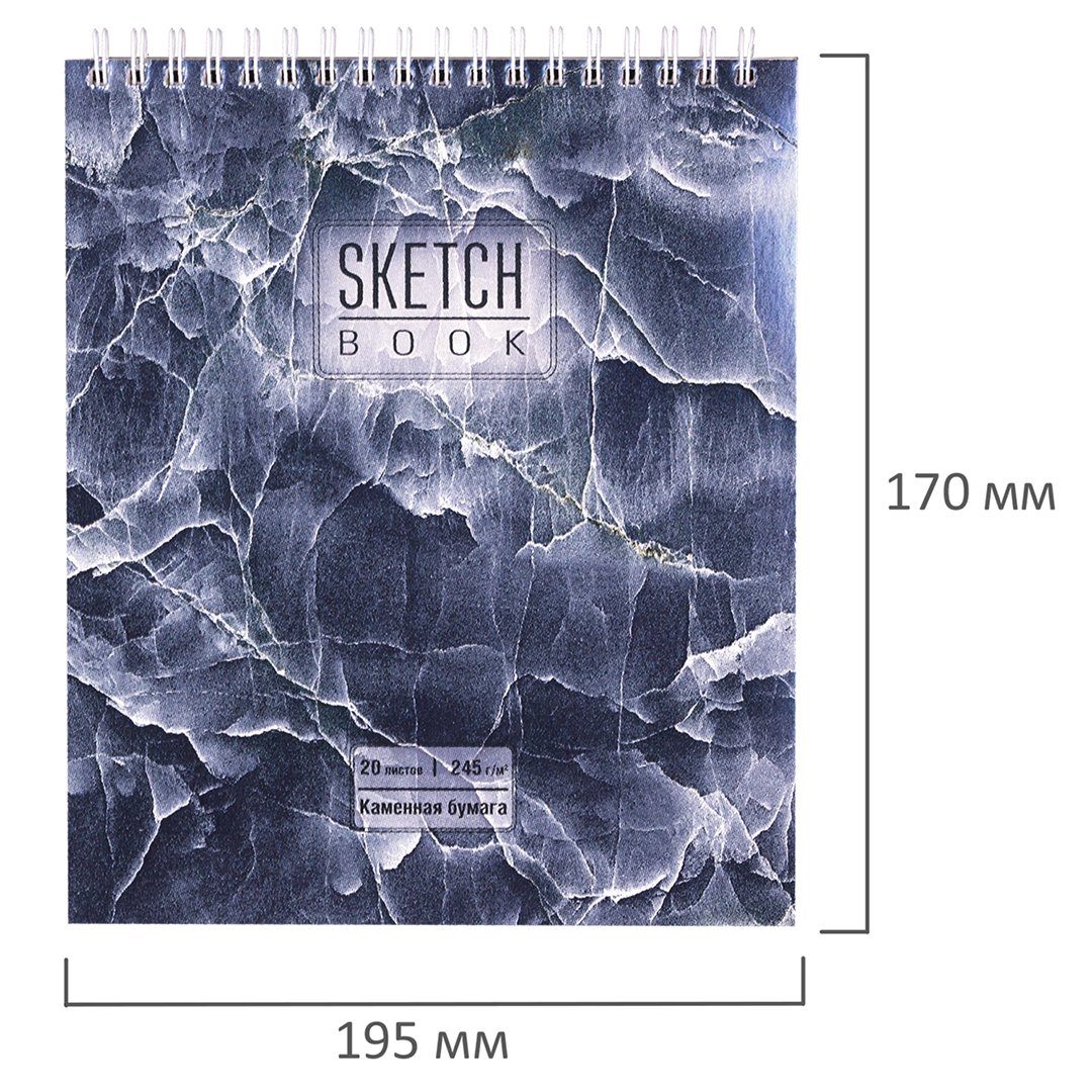 Скетчбук 170х195 мм, 20 л., на гребне, 245 г/м², каменная бумага