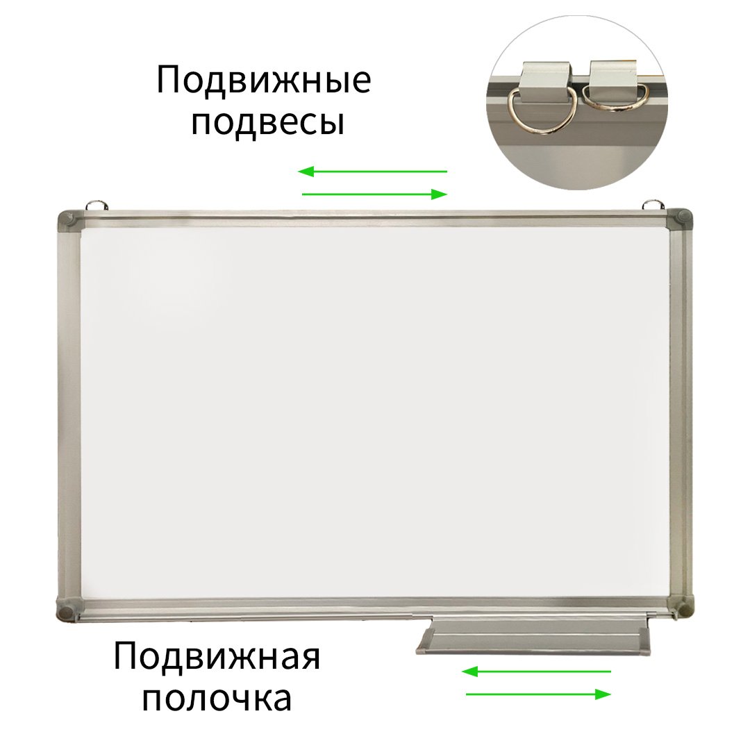 Универсальная белая магнитная доска на подвесах — идеальное решение для небольшого офиса или дома. Предназначена для письма маркерами, а также для крепления заметок, фотографий и других материалов с помощью магнитов.