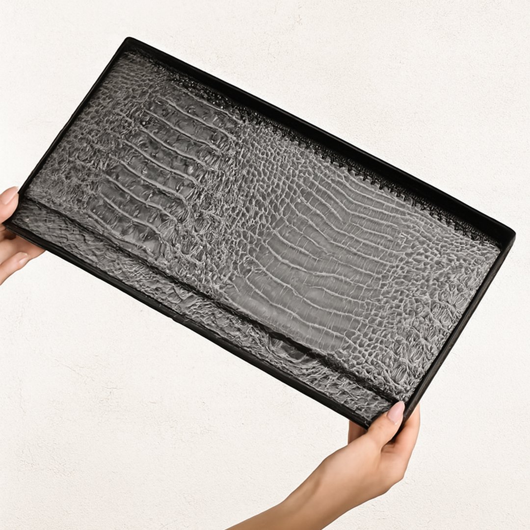 Обложка выполнена из высококачественной искусственной кожи «Аллигатор» в элегантном сером цвете, с аккуратной обстрочкой по периметру и твёрдым переплётом с поролоном, что придаёт изделию презентабельность и долговечность.
