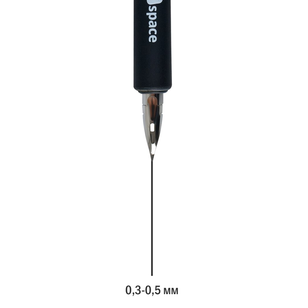 Толщина линии письма варьируется от 0,3 до 0,5 мм, что дает возможность рисовать как тонкие, изящные штрихи, так и более насыщенные линии.