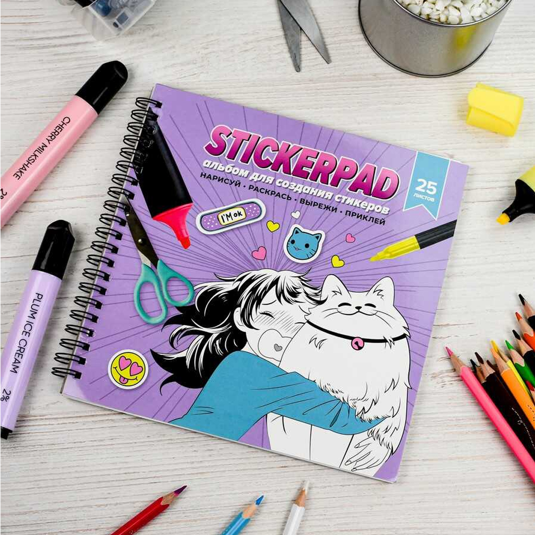 Альбом для создания стикеров, 25 л., белая самоклеящаяся бумага 80 г/м2, МАНГА — этот товар можно заказать оптом и в розницу с доставкой по Беларуси на сайте M4,