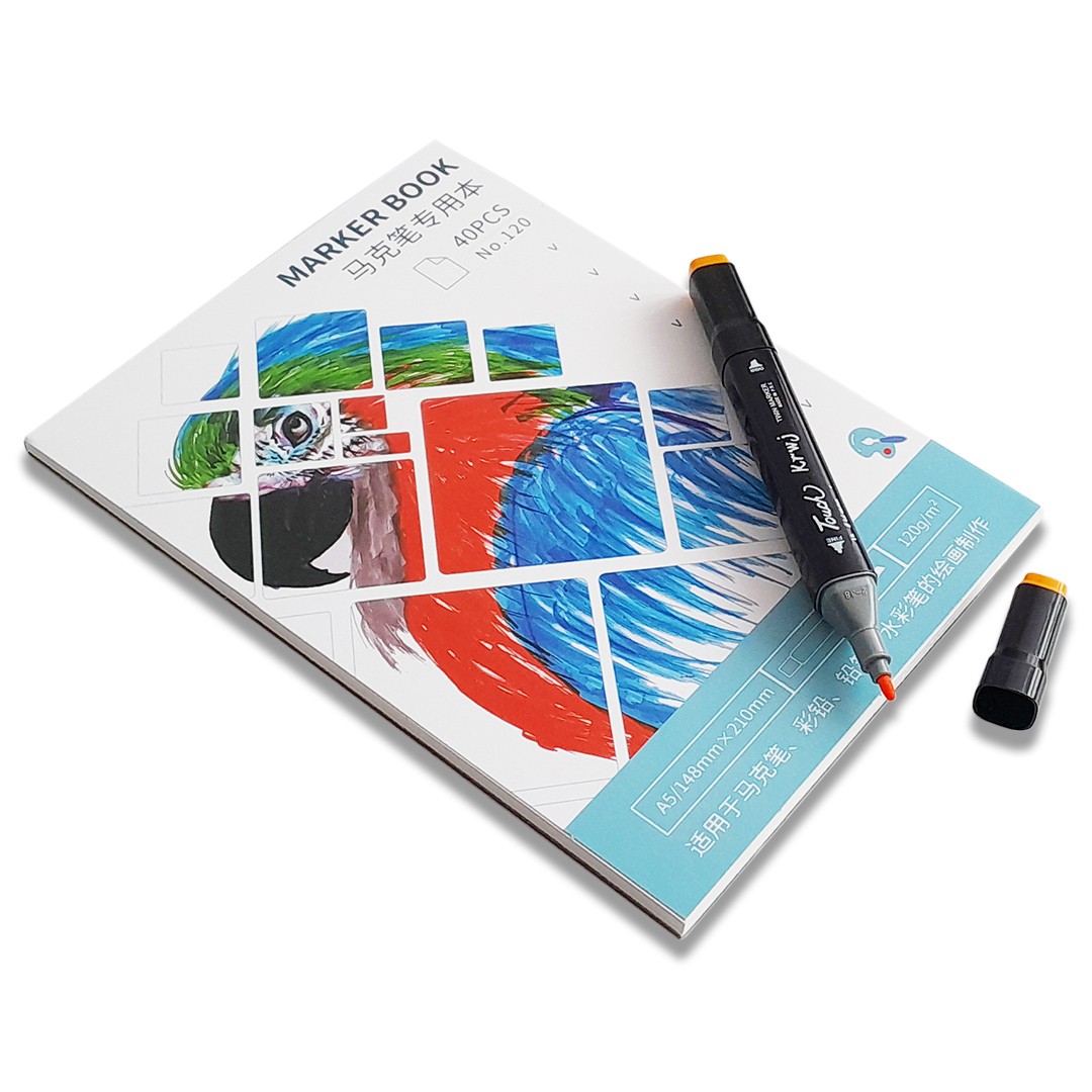 Скетчбук для маркеров и карандашей, с клеевым переплетом по короткому краю.