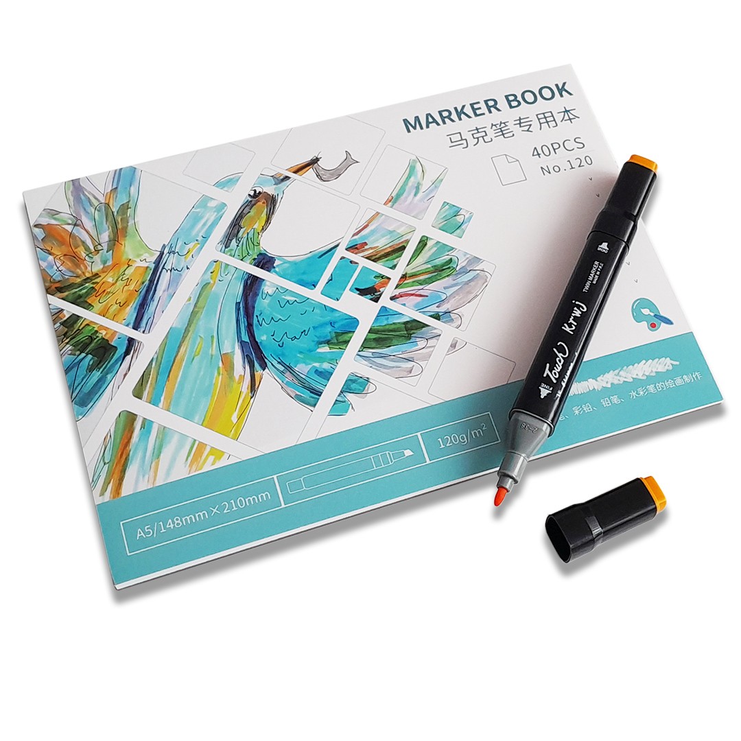 Скетчбук для маркеров и карандашей, с клеевым переплётом по длинному краю.