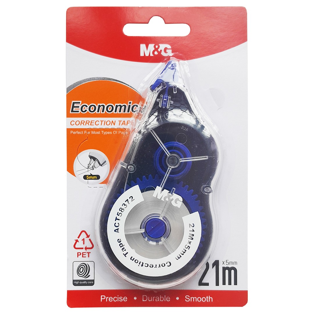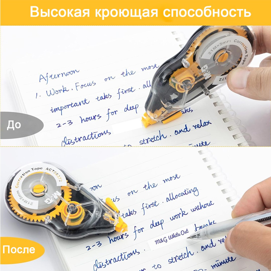 Корректирующая лента M&G в роллере 5 мм на 21 м, аккуратно исправляет неверный текст, подходит для всех типов чернил и бумаги.