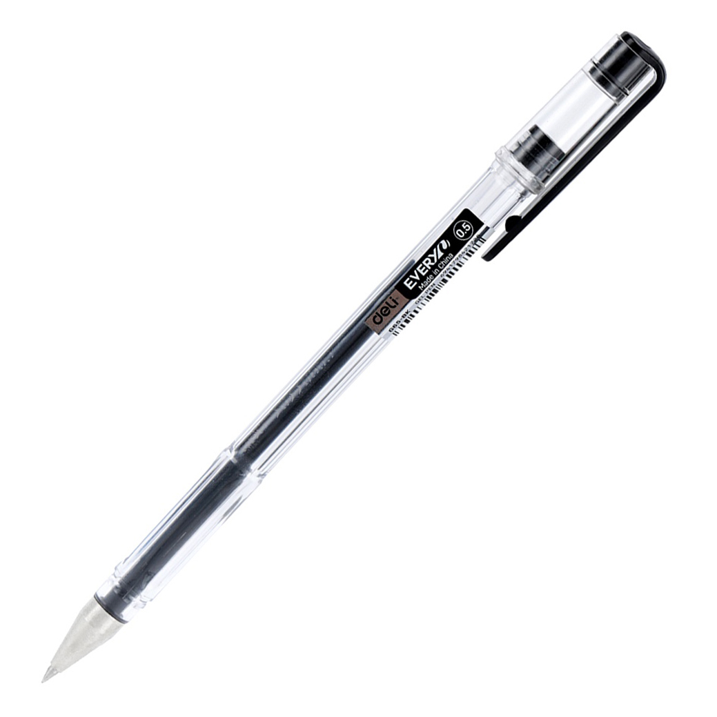 Классическая черная гелевая ручка Deli «EVERY» в прозрачном пластиковом корпусе для повседневного использования.
